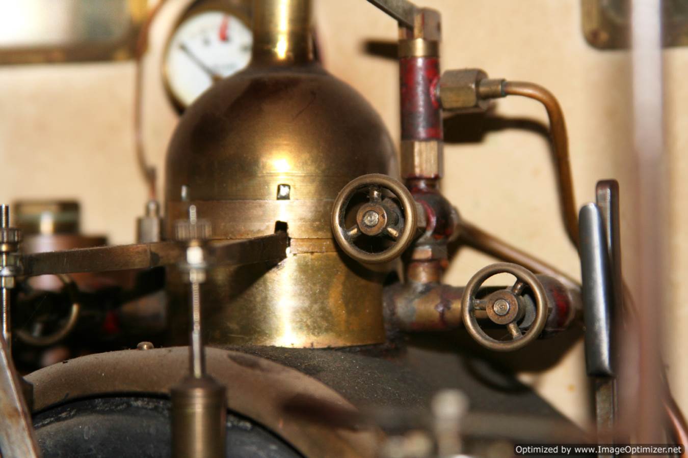 She is superheated, and there's lots of lovely little touches, things like the fish bellied slide bars and the pretty little turned ball lubricator pots ontop of them, the working salter safety valves,.... even a nicel wooden disk upon which the pressure gauge is mounted just give it that 'x' factor.