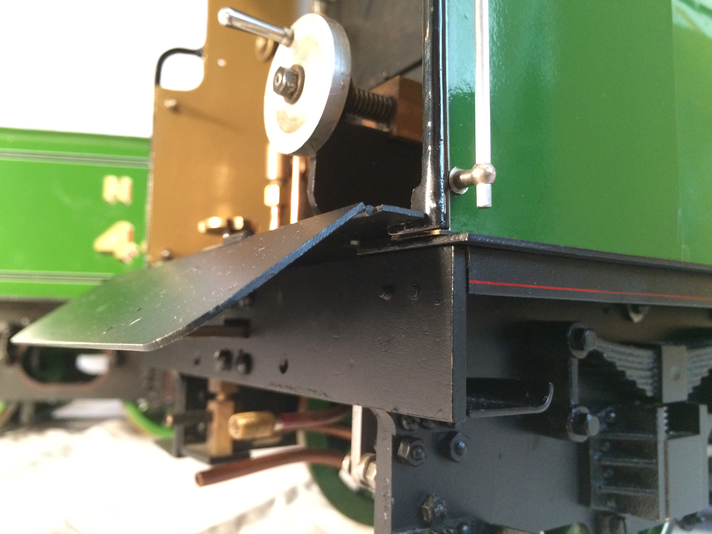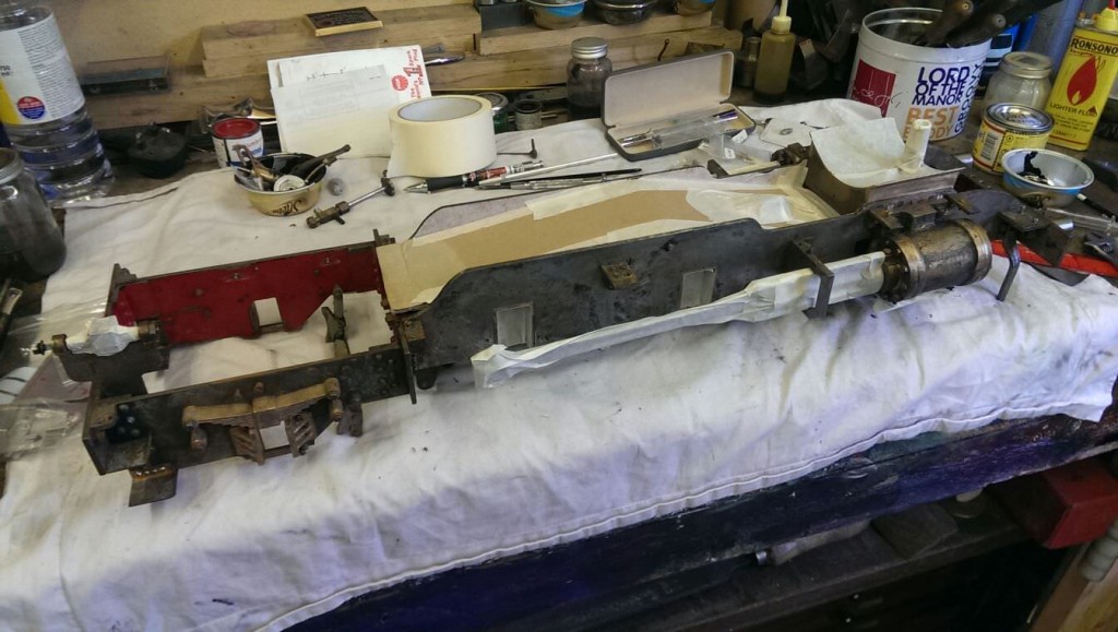 So the reassembly then begins in earnest. The running boards go back on, as do the ashpan and grate, which fasten to the chassis before the boiler drops in place over the top. The boiler retention clips originally bolted onto the outside of the cladding at the base of the fire box, but we have tweaked them to slide up between the boiler and cladding to neaten the whole thing up a little.