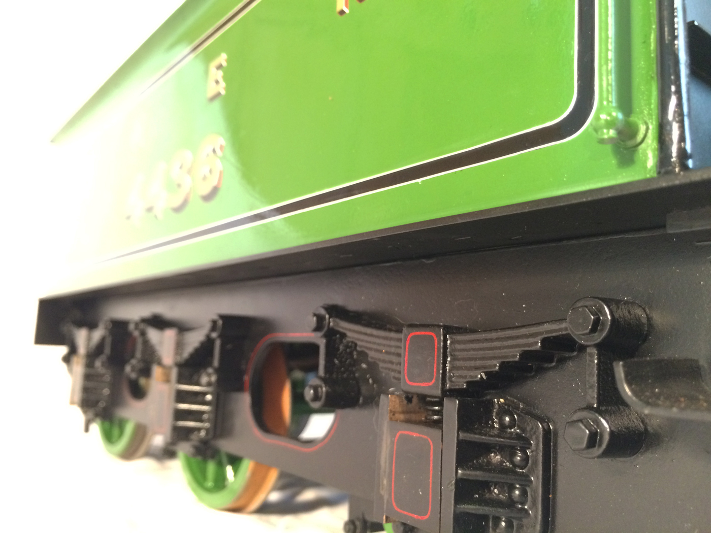 ....and the white lines can begin to go onto the cab, running boards, boiler bands and wheel rims.