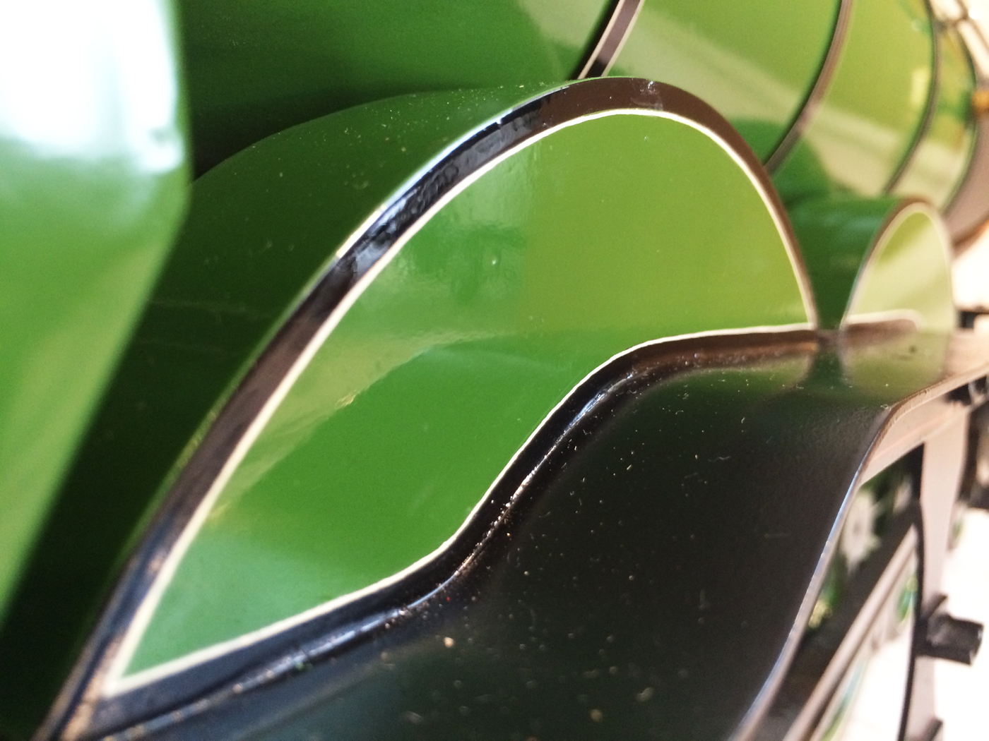 Further masking after initial coats are applied enables blacks to go on top of greens and vice versa.