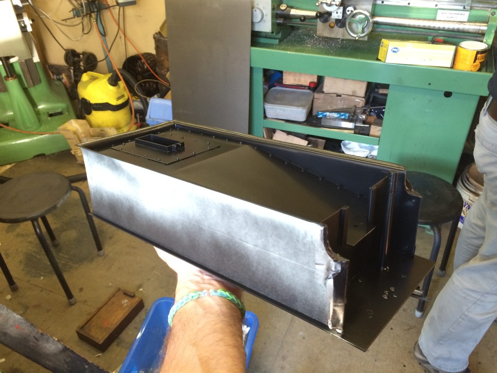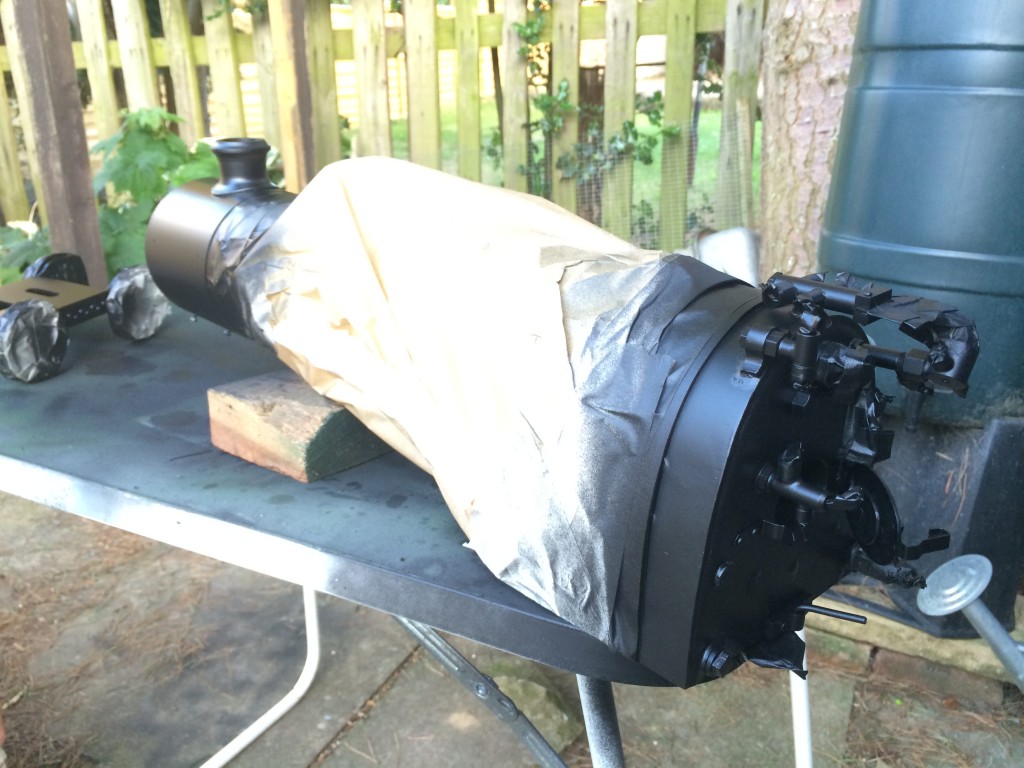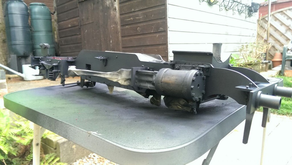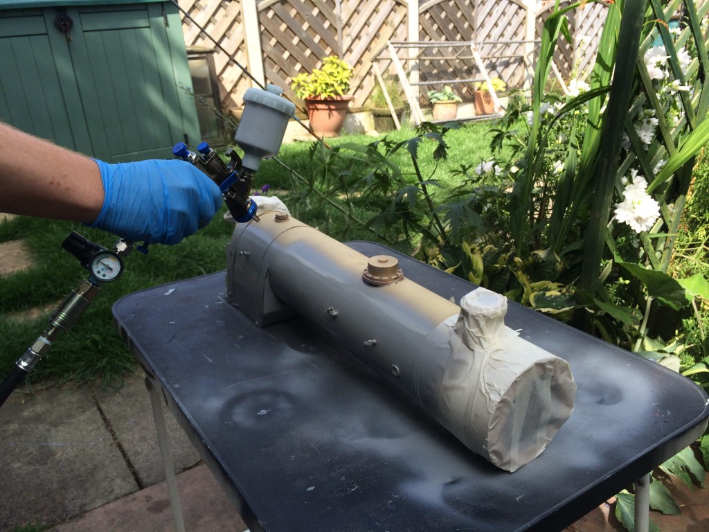 Some of the high temperature bits, don't receive primer, the HT black being applied directly to the bead blasted surface. Primers wouldn't take the high temperatures experienced in areas such as the smoke box, backhead and ashpan, so in these areas we use HT stove paint, and usually as it looks more appropriate we aim for a matt black finish.