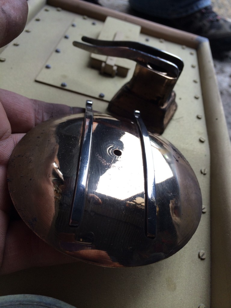 Some parts like the smoke box door, needed to have polished straps, and so they were polished up first, before selective masking, and subsequent blasting with the beads.