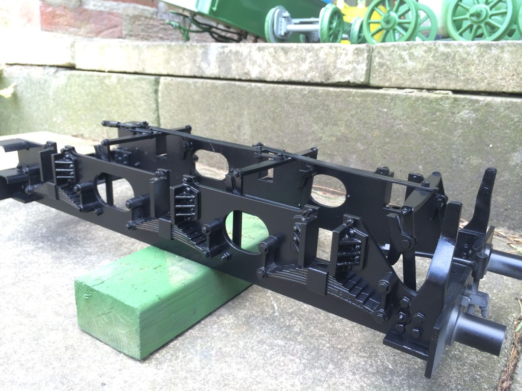 Meanwhile the chassis has also been following suit, first being stripped, cleaned up, primed and painted. Because of the specification for this particular re-paint, it wasn't possible to take the time to completely strip the chassis down, so it was carefully masked, and finished appropriately.
