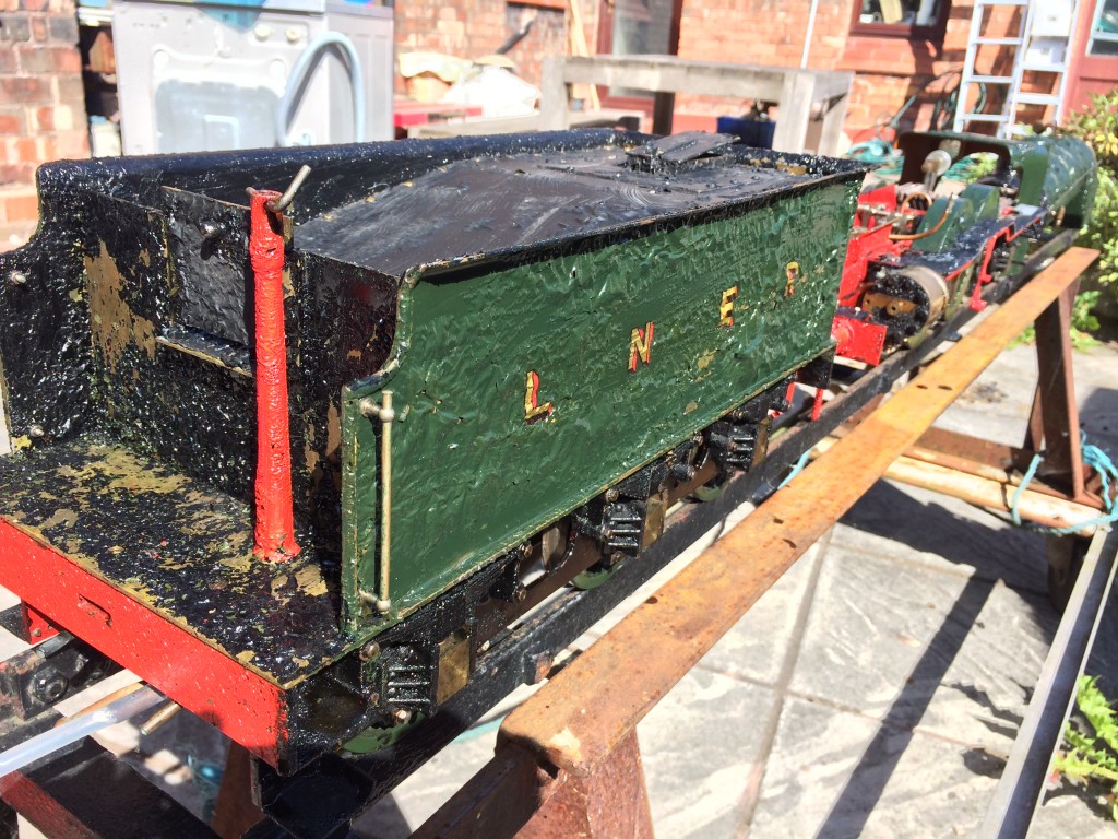This is how the loco came to us. Brand new, unsteamed and nicely built. But in some odd and badly applied colour scheme.