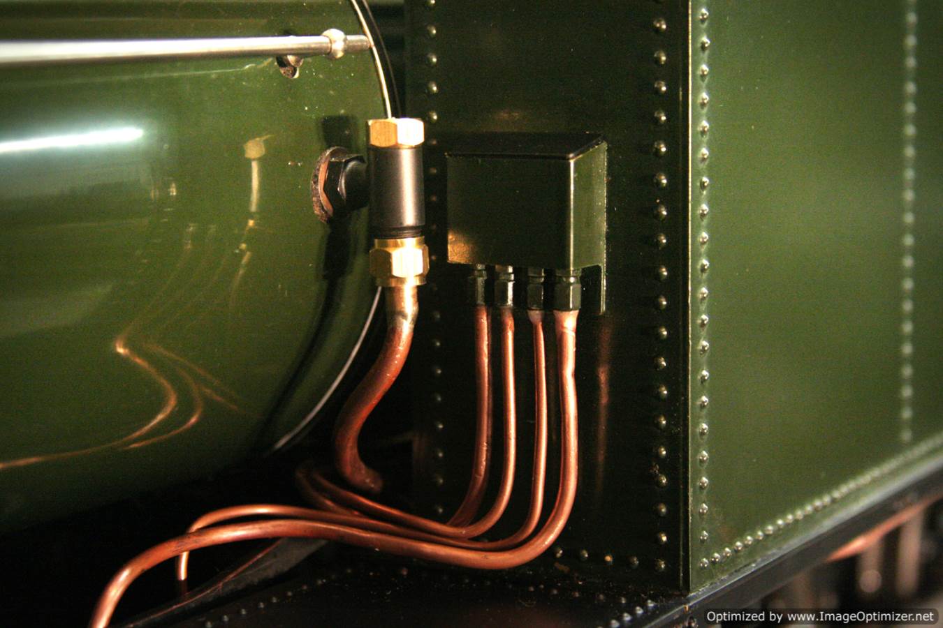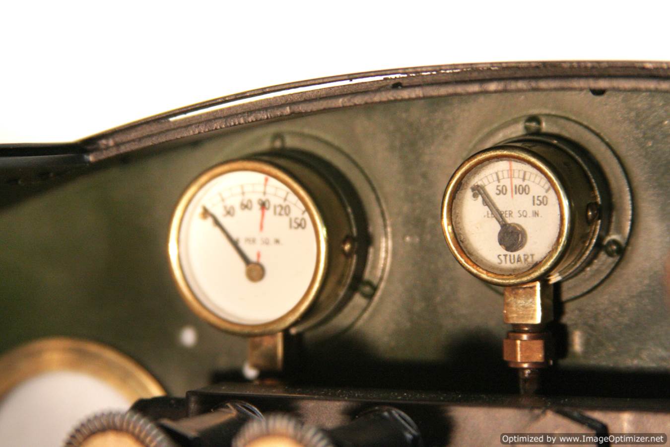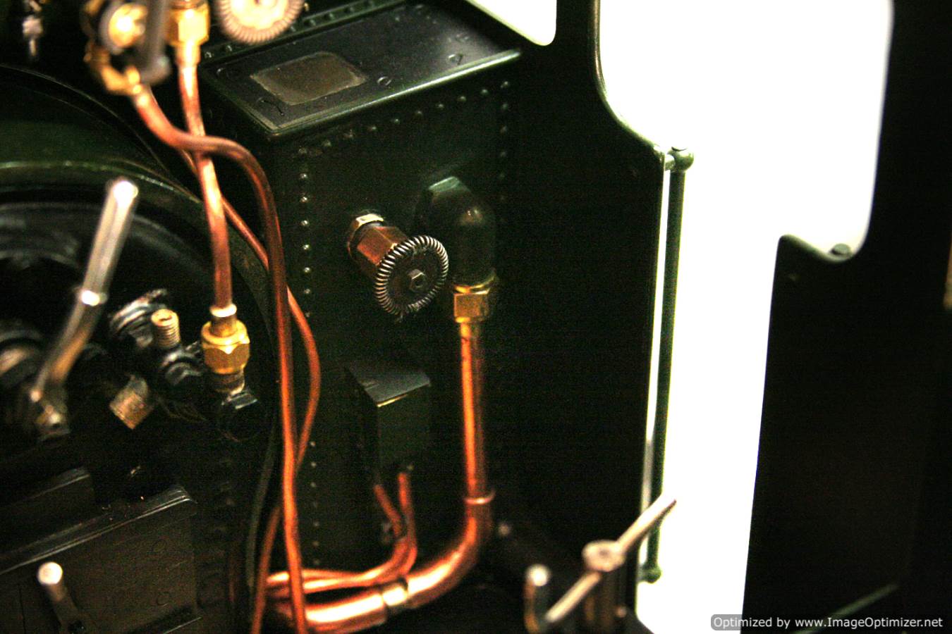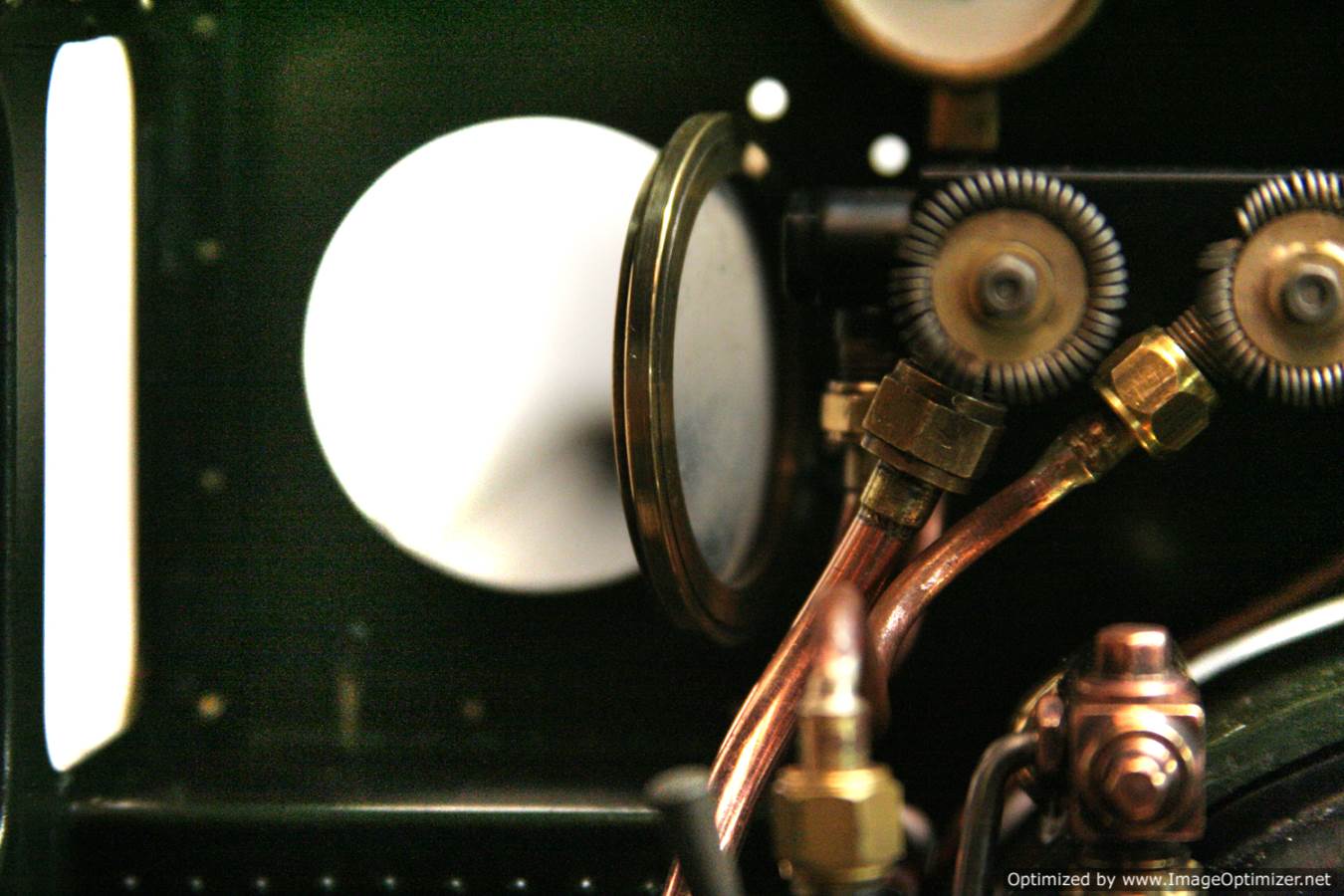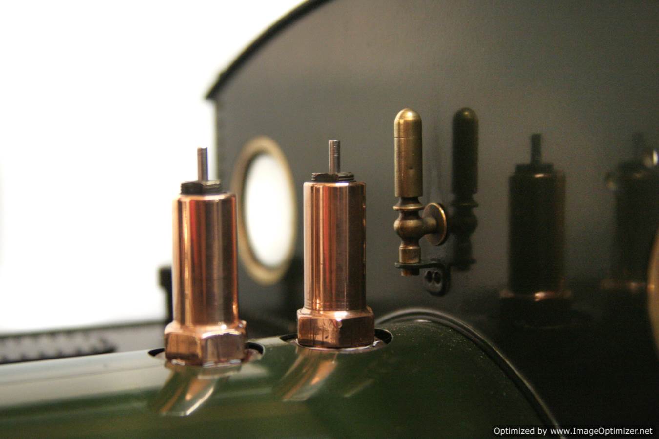 This one however is a cut above the usual Simplex. Built clearly by a very careful and skilled model engineer, there is loads of lovely finesse and extra attention to detail here that you simply don't find on your average Simplex, and so we thought it worthy of a bit of a cosmetic spruce up to bring the paint back up to the mechanicals. Having already stripped it down here at the works we can confirm that even the backs of the tanks are beautifully riveted! All the internal oil points have lovely little wicked oil pots fed through pipe runs, the axle driven water pumps run through a footplate mounted bypass valve, and there is a neat little clear perspex window in the cab that the bypass pipe splashed onto so that you can watch the feed rate. There is a working water level float indicator and gauge on the tank top in the cab too. The engine is fitted with working vacuum brakes running from a working vacuum ejector, there's even a steam chest pressure gauge to show you how hard she's working! In short, it's a gudun!