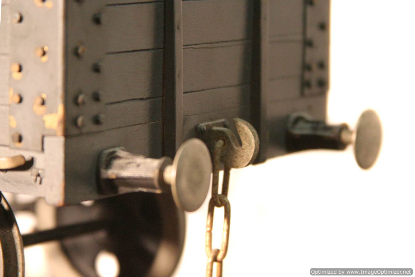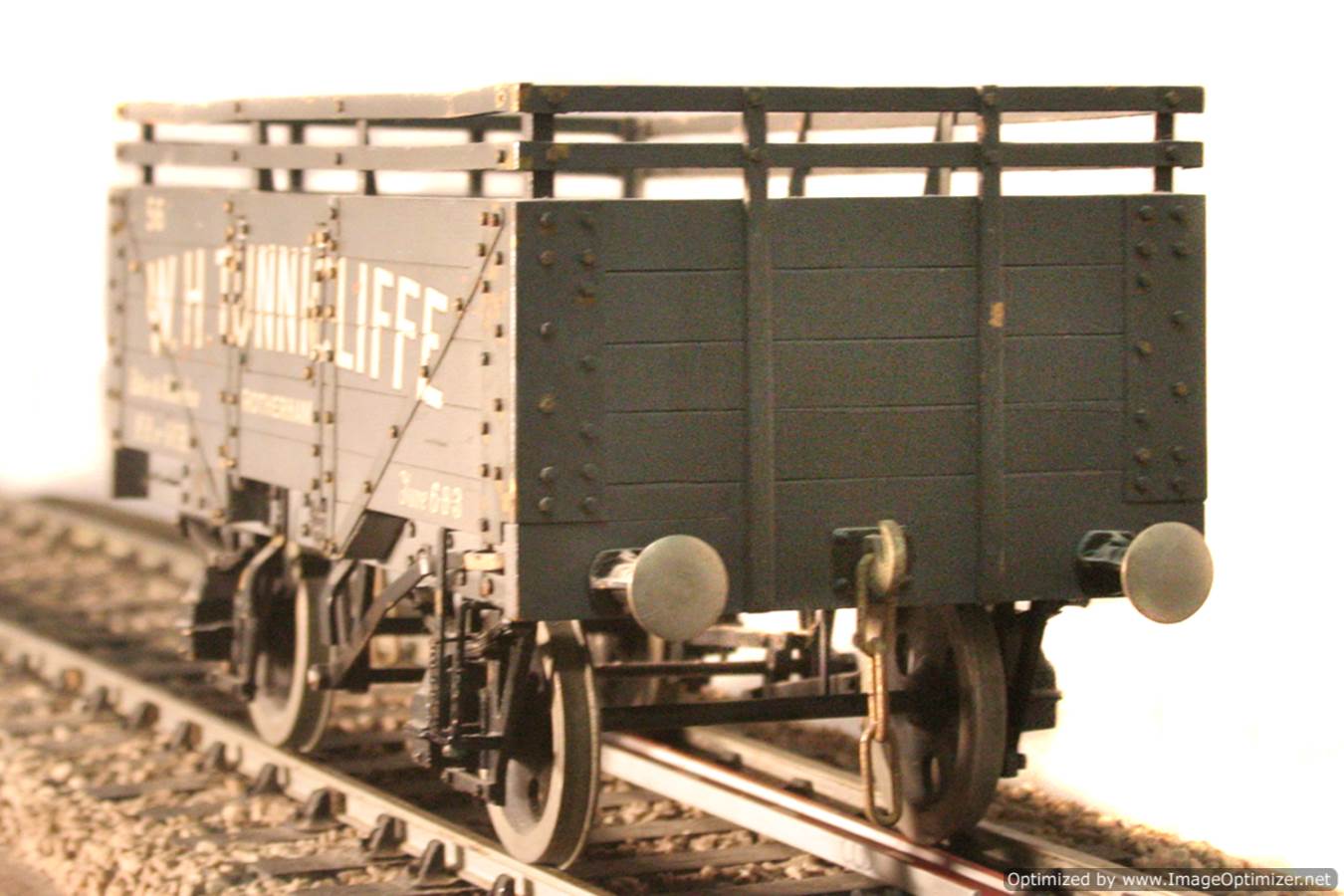 Here we have a rather beautifully made scale model of a wooden framed 5 plank mineral wagon. Built we think to 1/16th scale for 3 1/4" gauge. There is room to 'tweak' out the wheelsets to fit on 3 1/2" gauge, where the wagon will work, but look a little on the small side.