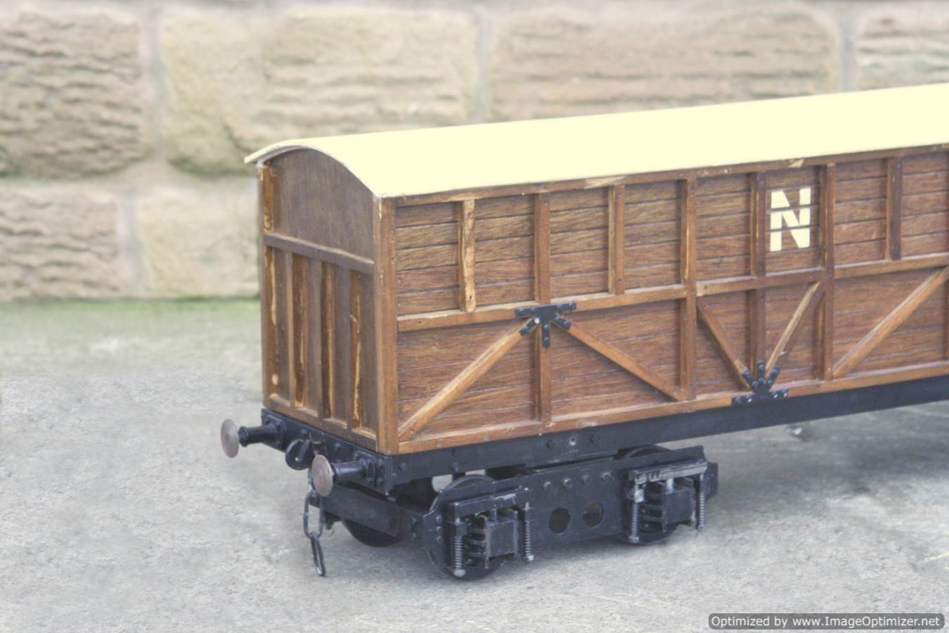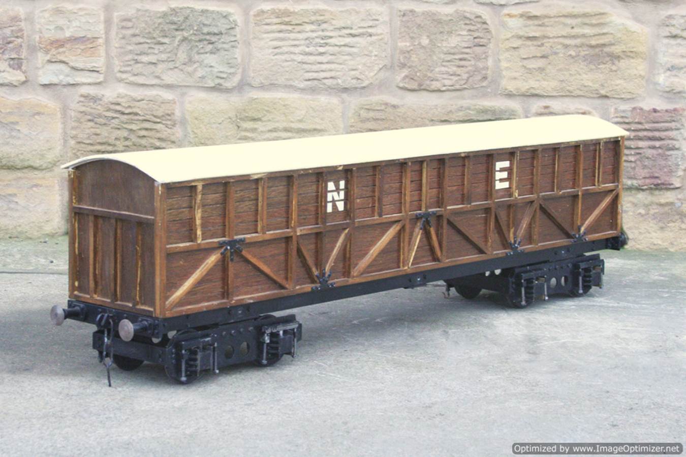 Here we have a nicely constructed North Eastern Railway Parcels van riding truck.  Substantially built with a semi-scale appearance, this is a robust and free running wagon, and it comes with it's own equally robust carrying case.  Although not a completely accurate 'scale' model, this would make a brilliant driving truck for GL5 running, or simply an interesting wagon to add to your rake.