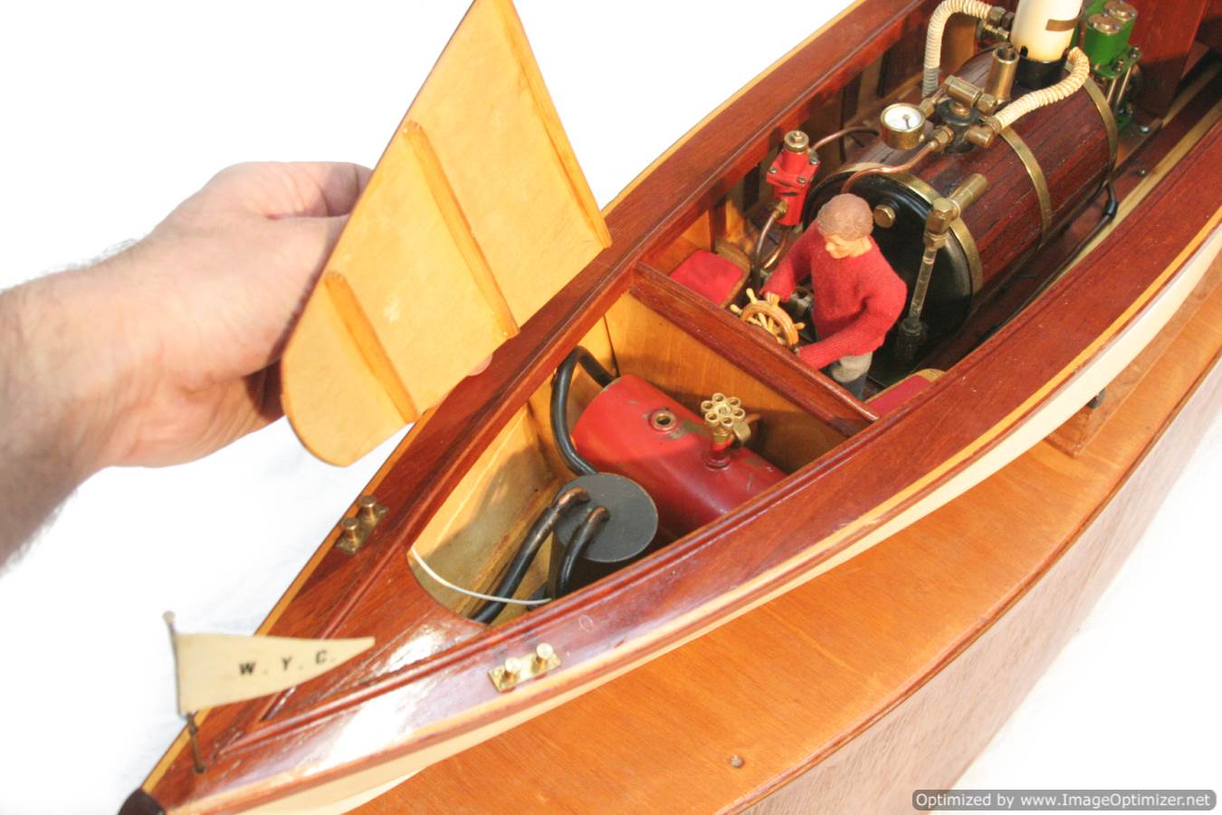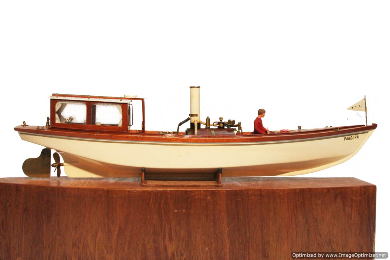Here we have a lovely little Windermere steam launch named 'Pandora'. Powered by a fully certificated gas fired Cheddar boiler and 'Gemini' twin cylinder steam engine, this is a well constructed and ready to play model.