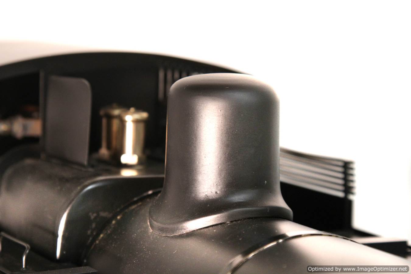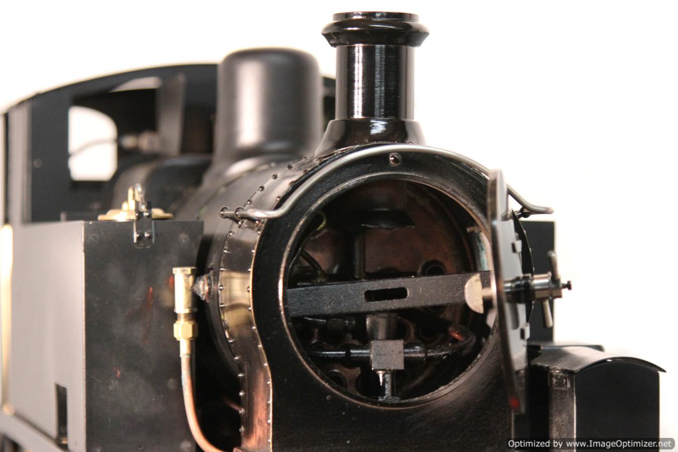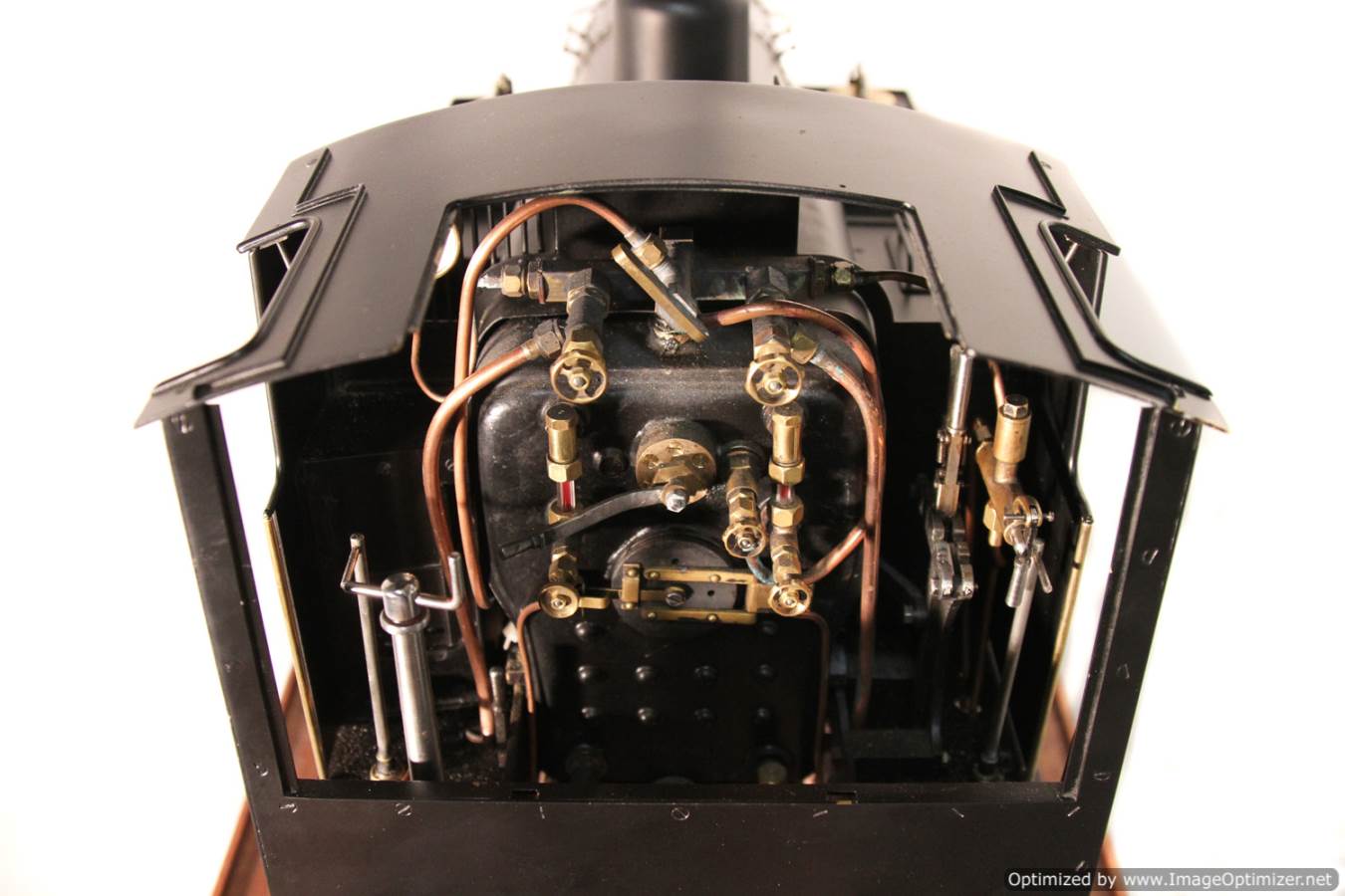 The body work and general finish of the top end is plain, a little utilitarian, but non the less crisply done. It would benefit from someone spending a little time with a file on the dome and chimney base to give them a more satisfyingly prototypical thinness, and the flat satin black is again,..... perfectly fine and tidy,.... but a bit,.... flat!