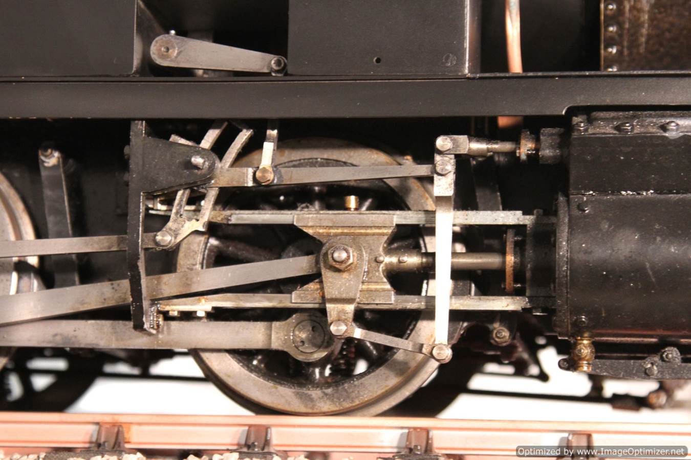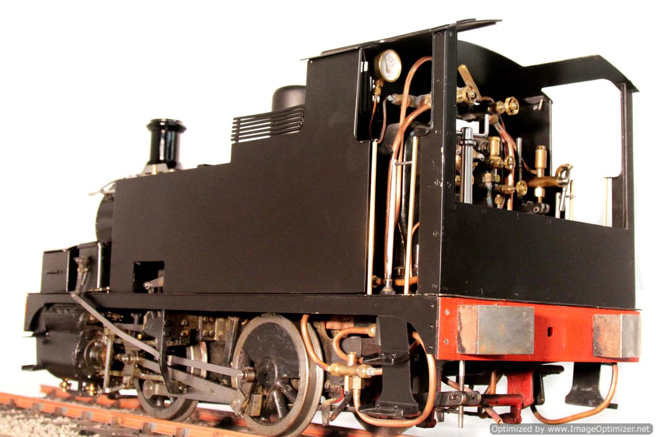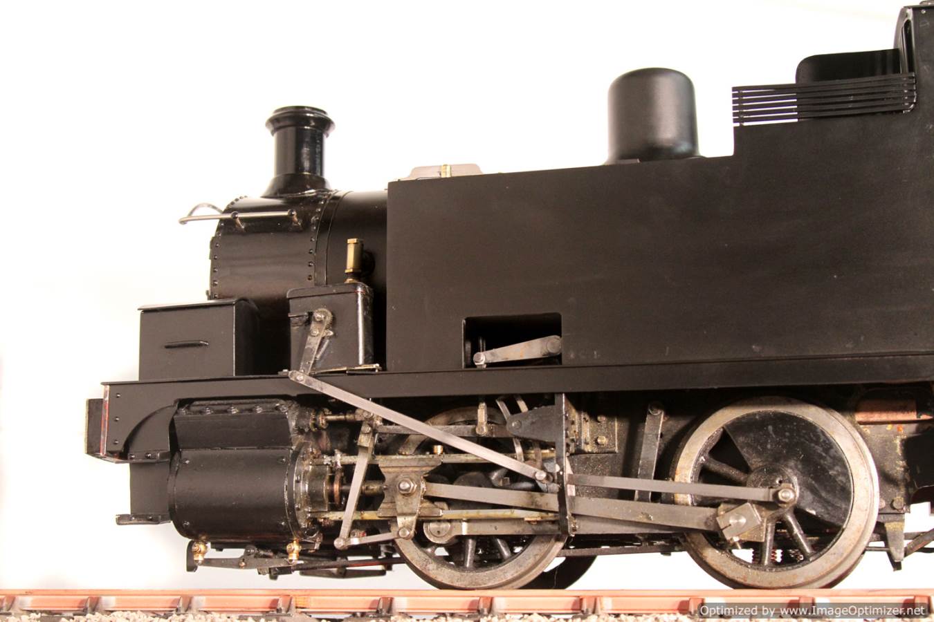 The body work and general finish of the top end is plain, a little utilitarian, but non the less crisply done. It would benefit from someone spending a little time with a file on the dome and chimney base to give them a more satisfyingly prototypical thinness, and the flat satin black is again,..... perfectly fine and tidy,.... but a bit,.... flat!