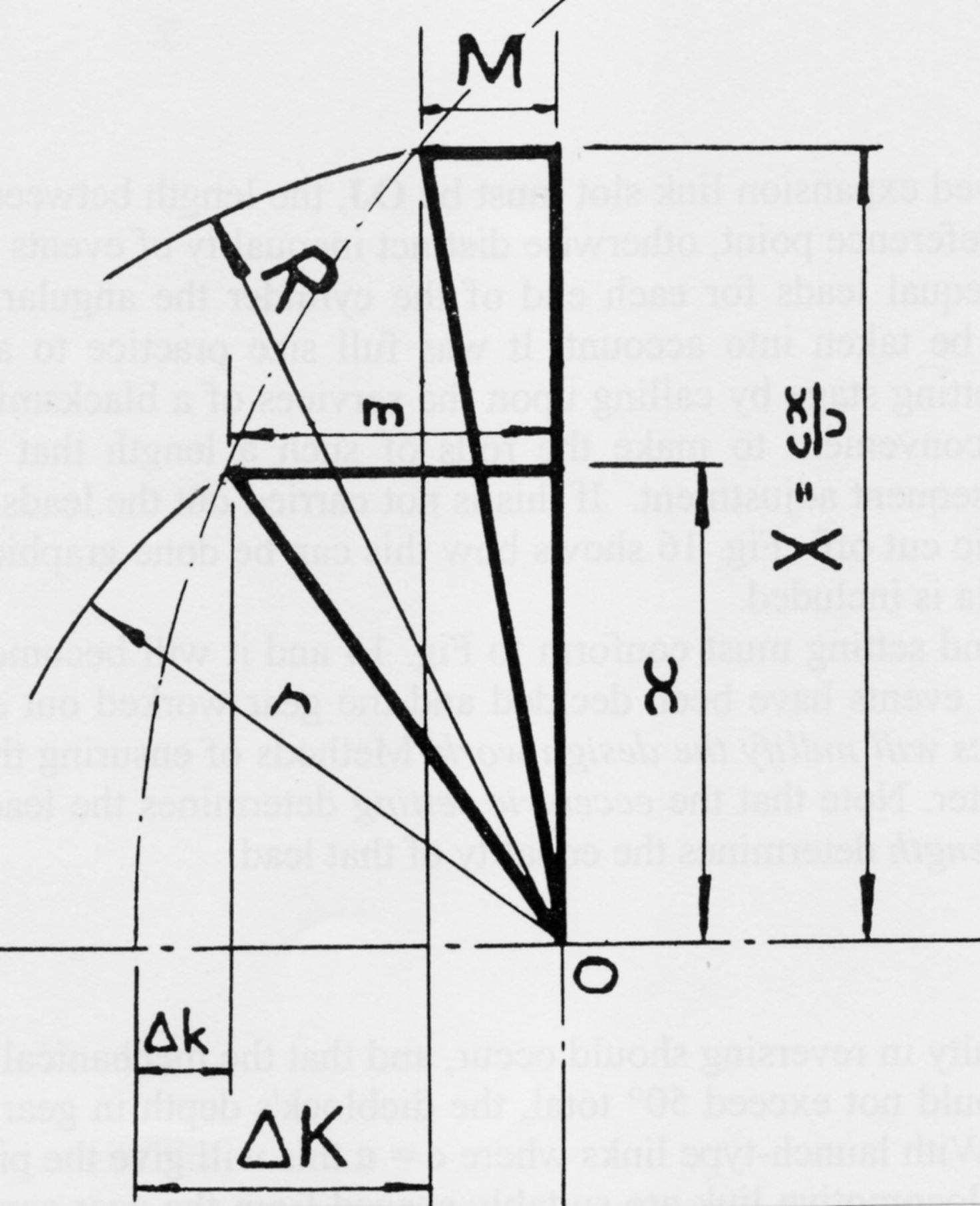 For a launch link, where the eccentric rod pin can align with the dieblock for full gear, the actual eccentric and its equivalent eccentric are the same, represented by the triangle m,x,r herewith. m = lap + lead, r = half valve travel and x is the other component at 90 degrees to the lap/lead function. Triangle M,X,R shows the setting and advance for a locomotive link eccentric to achieve the identical performance, superimposed on the launch link eccentric. The equivalent eccentric is the same for each case.